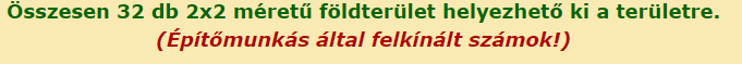 Összesen 32 db 2x2 méretű földterület helyezhető ki a területre. ID:1296664 köszi